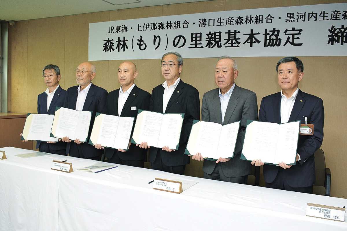 JR東海は環境保全や生物多様性に関わる取り組みを展開する一環で、これまでも南アルプス地域で活動。今回の協定では、同組合と両生産森林組合が森林の長期管理を目的に策定した計画に基づいて支援を行う。具体的な支援内容は年度ごとに見直しを行いながら検討するという。