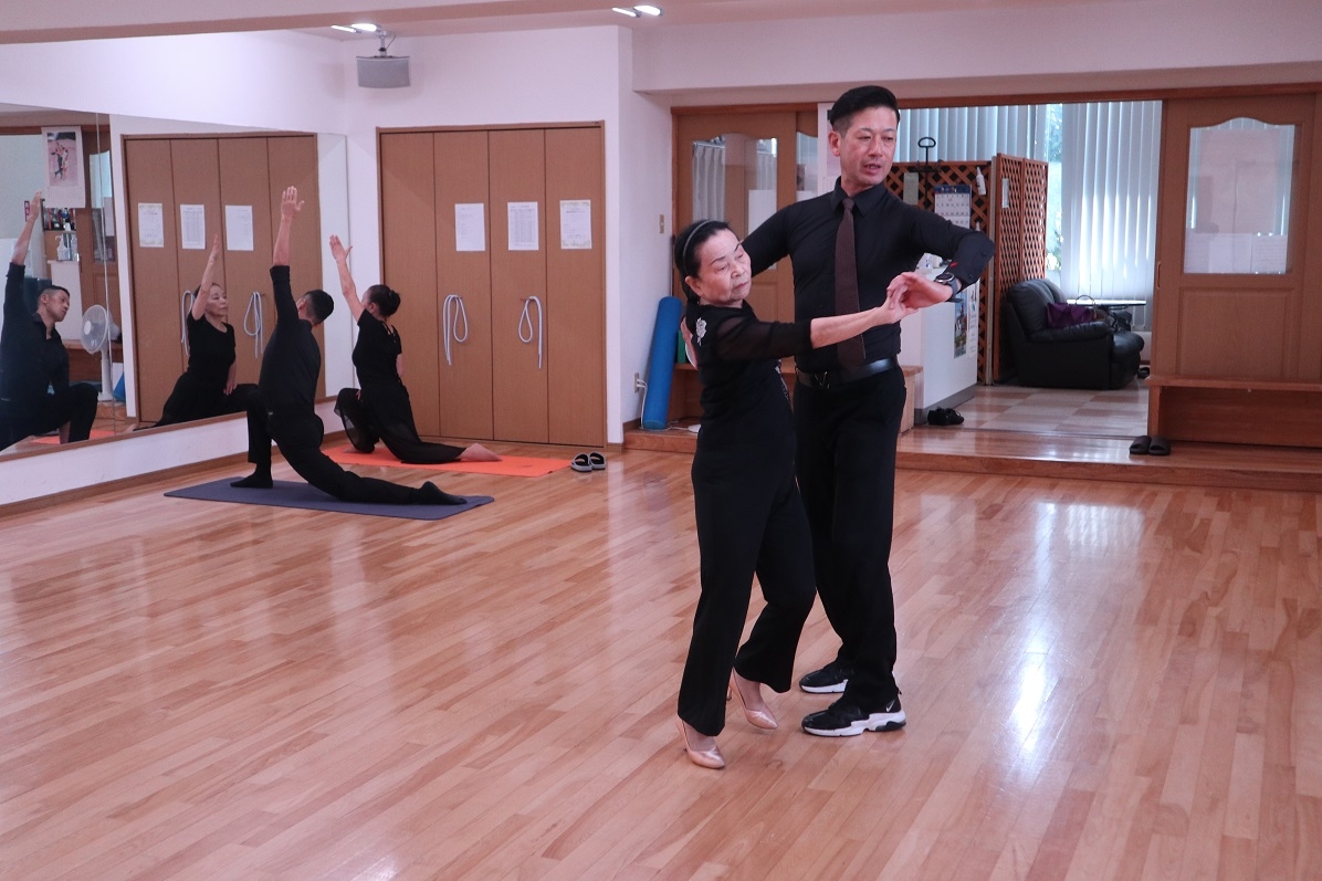 教室を経営する山本純一郎さんによると、教室の生徒は約50人。子どもから高齢者まで幅広い年代層が学んでいる。この中で杉さんは、3月の発表会に向けて、山本さんとペアとなってレッスンを続けている。「『もっと体を伸ばして』などと厳しく指導しています」と山本さんは笑う。