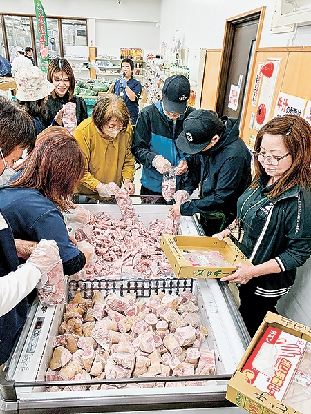 11月29日は語呂合わせで「いい肉の日」。石垣市内の精肉店などは地元産和牛のおいしさを堪能してもらおうと特価セールを開いた。このうちJAファーマーズマーケットゆらてぃく市場では精肉の大特価販売やJA石垣牛肥育部会特製の牛汁販売があり、終日多くの買い物客でにぎわった。