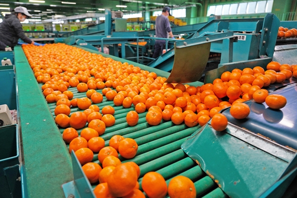 選果される温州ミカン(和歌山県田辺市下三栖で)