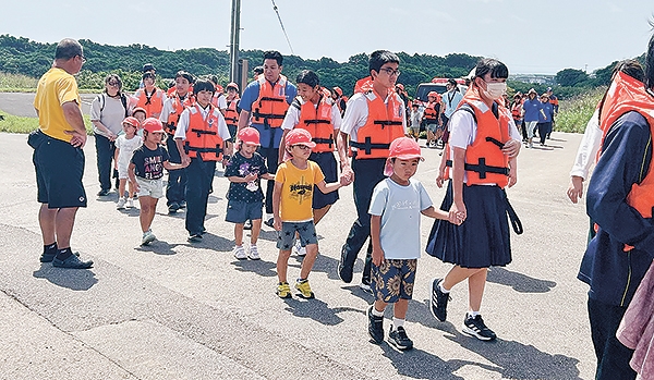 小浜消防団と駐在所が迅速に避難ルートの安全確認を行って誘導、安全確保に努めた。中学生が園児や児童の手を引いて避難をサポートした。ちゅらさん広場への避難後は、保護者への引き渡しもスムーズに行われた。