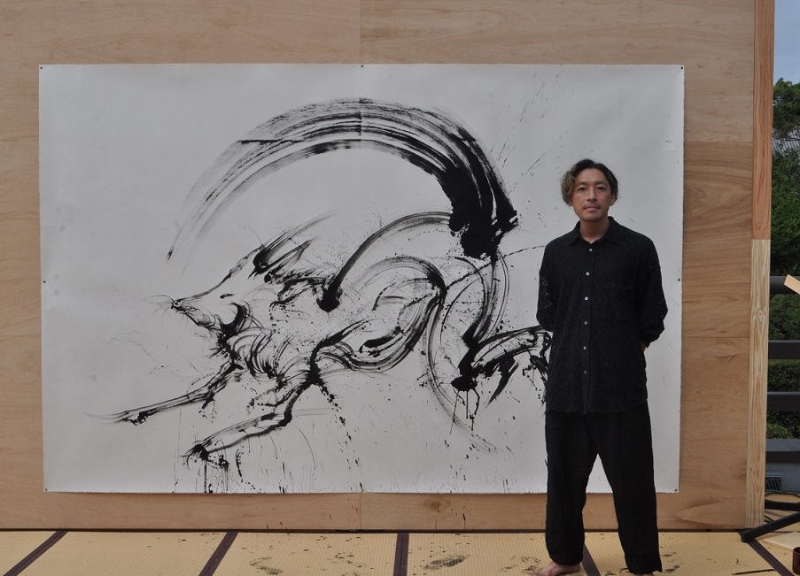 西元さんは1988年鹿児島県生まれ。日本を代表する墨絵師で、見る人を圧倒するダイナミックな表現が特徴だ。香港クリスティーズオークションでは、その場で描き上げた墨絵が即座に落札された。