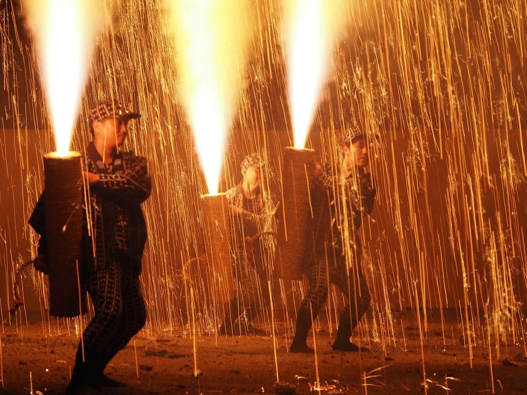 手筒の放揚は厄払いの神事。長年、安全面を気にかけてきた揚げ手らのことを考えれば、正しいやり方を重視するのが当然で「意匠の問い合わせがあれば、左手が上が正式としてきた」と酒井会長は語った。