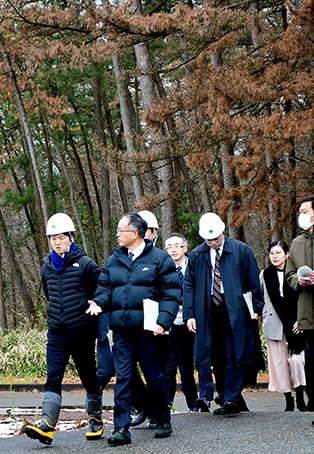 鈴木農相はこの日、加藤鮎子衆院議員(山形3区)と共に酒田市浜中の北庄内森林組合酒田支所を訪れ、一帯を視察、県や林野庁の担当者から被害状況の説明を受けた。同市十里塚の十坂コミュニティセンターに場所を移し、県と地元自治体、保全団体、JAの関係者約20人と意見を交わした。終了後、鈴木農相は生活を営む上で防砂・防風など海岸林の果たす役割は大きいとの認識を示し、「現実としてほとんど枯れている。枯れていないものについてもなかなか厳しい状況。人的被害を出さないため道路沿いやビニールハウス周辺など優先度合いを考え、再生に向け国と県、地元自治体、森林団体の関係者が連携し取り組みを進めたい」と話した。